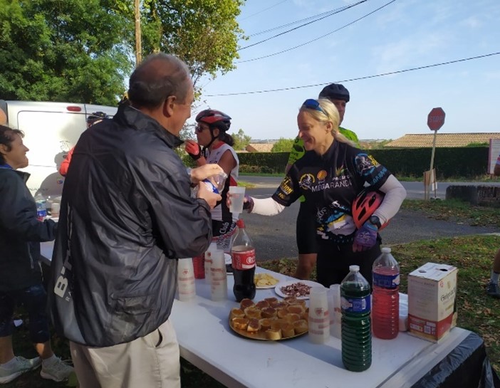 Ravitaillement avec grillades à Vallègue - Bière offerte à l'arrivée